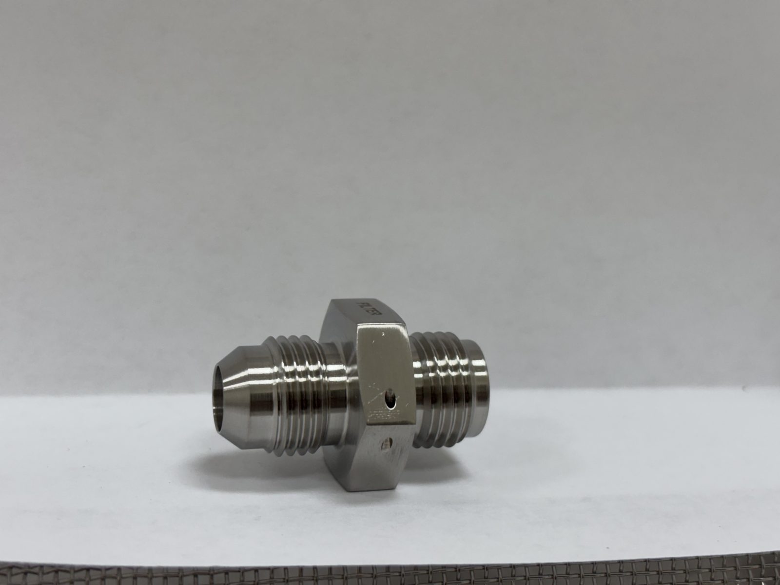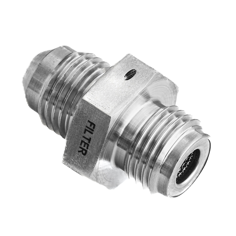 This filter fitting is a precision-engineered connector used to securely join filtration components within a system, ensuring a leak-free seal and proper fluid or gas flow through the filter, and has a flared end to provide a stronger mechanical connection and improved sealing integrity under pressure.
